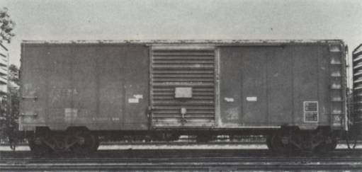 The example of CONCARRIL design type V, in the following photo, is not covered within the scope of this study; this photograph was included to show the distinctive welded 3-piece Dreadnaught style end and the 4-panel Youngstown style door. 1235 is part of number series 1203 – 1317.