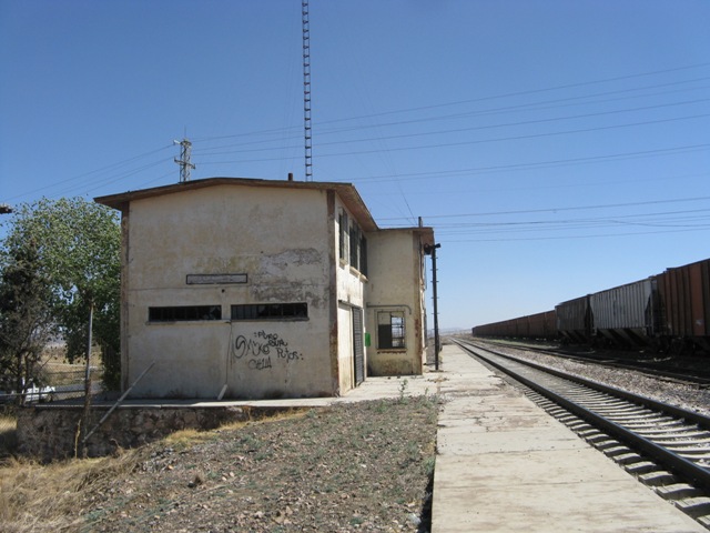 Línea Q, Kilómetro: 381 Distrito de: Ubicación Geográfica: Anahuac, Chihuahua. (Ver en mapa) Estado Actual: Abandonada Fotografía: Juan Cabuto Vidrio Cortesía de la FUNDACIÓN FERROCARRILES DE BAJA CALIFORNIA, I. A. P. Fecha: 2011 111120 Roberto Ruelas Gómez Regresa a ESTACIONES DE FERROCARRIL