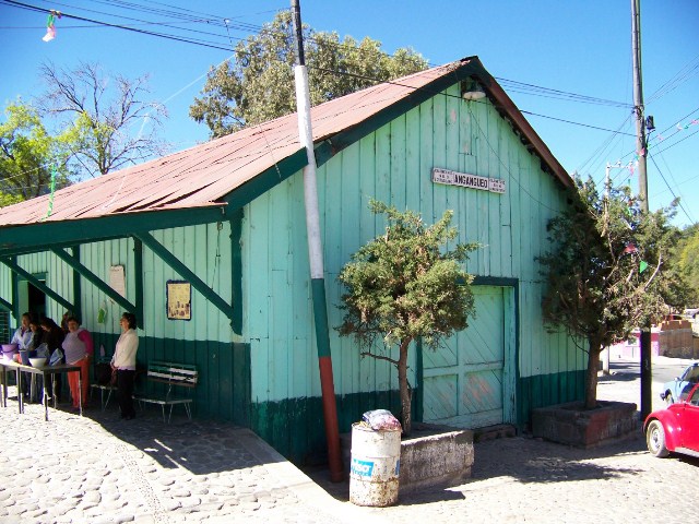 Comentarios*: Los rieles fueron levantados hace tiempo. El ferrocarril daba servicio al mineral de Angangueo. El semáforo aún tiene la bandera.