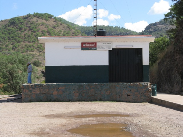 Línea Q, Kilómetro: 669 Distrito de: Ubicación Geográfica: Bahuichivo. Estado Actual: Fotografía: Juan José Cabuto Vidrio - Cortesía de la FUNDACIÓN FERROCARRILES DE BAJA CALIFORNIA, I. A. P Fecha: Junio 2009