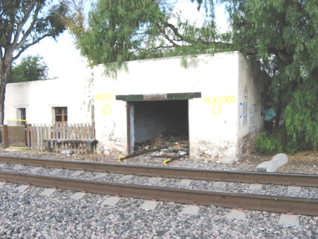 Línea B, Kilómetro: 648 Distrito de: Ubicación Geográfica: Carretera Charcas-Villa de Guadalupe, San Luis Potosí. (Ver en mapa) Estado Actual: Los edificios de madera están a punto de perderse. Fotografía: Roberto Ruelas-Gómez Fecha: Mayo 2007
