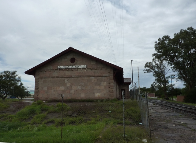 Comentarios*: Fue construida en terrenos que fueron del Rancho San Antonio, lote sur de la antigua Hacienda de San Jacinto, cedidos por la Sra. Doña Rosa Llaguno de Ibargüengoitia, el 25 de septiembre de 1883, en calidad de donación a la Compañía Limitada del Ferrocarril Central Mexicano, para la construcción de vía y una estación de la línea México-Paso del Norte. Según la tradición oral, se dice que durante el periodo de la Revolución Mexicana quemaron el edificio original el cual era de madera, así pues el que ahora existe fue construido en 1925. Hasta los años sesentas aproximadamente, este lugar fue una estación clave para embarcar mineral de las minas de San Pedro Tepezalá y el Orito.