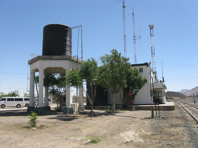 Línea Q, Kilómetro: 381 Distrito de: Ubicación Geográfica: Tabaloapa, Chihuahua, Chihuahua. (Ver en mapa) Estado Actual: Oficinas de Ferromex Fotografía: Juan Cabuto Vidrio Cortesía de la FUNDACIÓN FERROCARRILES DE BAJA CALIFORNIA, I. A. P. Fecha: 2011 111120 Roberto Ruelas Gómez Regresa a ESTACIONES DE FERROCARRIL
