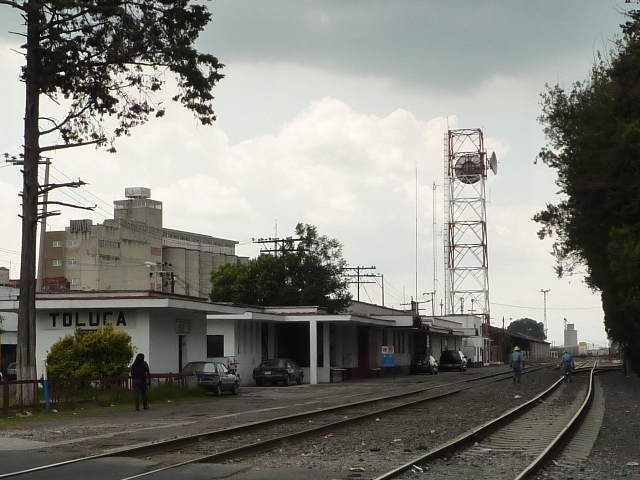 Línea N, Kilómetro: 74 Distrito de: Ubicación Geográfica: Toluca, Edo. de México. (Ver en mapa) Estado Actual: La Estación de pasajeros es usada por KCSM. Fotografía: Roberto Ruelas-Gómez Fecha: 15 junio 2010.