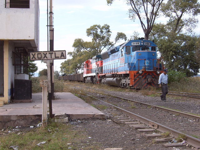 Ubicación Geográfica: Fotografía: L.C.C. Emmanuel de la Vega González Fecha: Comentarios: Edificio tomado por el municipio de Coronango, sin uso actual. En la fotografía, la locomotora SD40-2 FXE3198 en color azul NDM. 061230 Roberto Ruelas Gómez Regresa a Página Principal